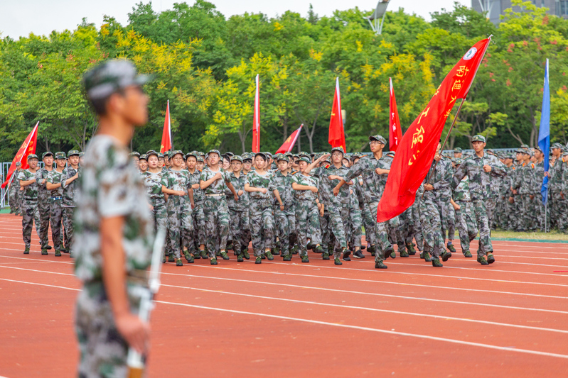 一起唱军歌,一起踢正步,一起练队形……同学们在操场上接受的“开学第一课”融合了汗水与欢笑。新朋友的陪伴、新环境的体验、新方式的生活,一切都让新生们的目光充满新鲜与希冀,就连严肃的教官也带上几分可爱的色彩。